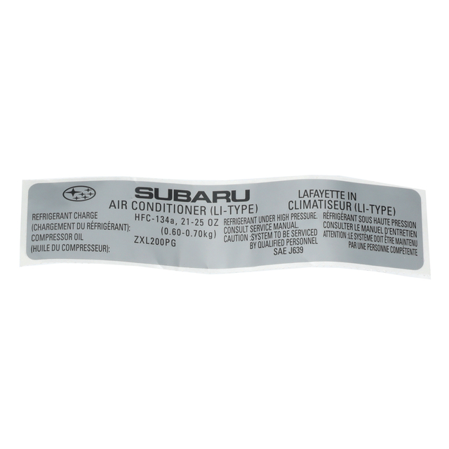 Subaru's history combining vehicle safety and strength makes it one of the safest cars on the market. This unique combination along with other safety features makes it ideal for drivers of all ages. Rest assured that this OEM NEW 01-06 Subaru Baja Outback Legacy 2.5L Air Conditioner Label 73772AE09A for your 2001-2006 Subaru vehicle is manufactured from Subaru and is 100% OEM. Subaru Parts & Accessories Limited Warranty.
