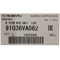 Subaru's history combining vehicle safety and strength makes it one of the safest cars on the market. This unique combination along with other safety features makes it ideal for drivers of all ages. Rest assured that this OEM NEW 2015-20 Subaru WRX Crosstrek Door Mirror Unit Passenger Side 91036VA062 for your 2015-2021 Subaru vehicle is manufactured from Subaru and is 100% OEM. Subaru Parts & Accessories Limited Warranty.